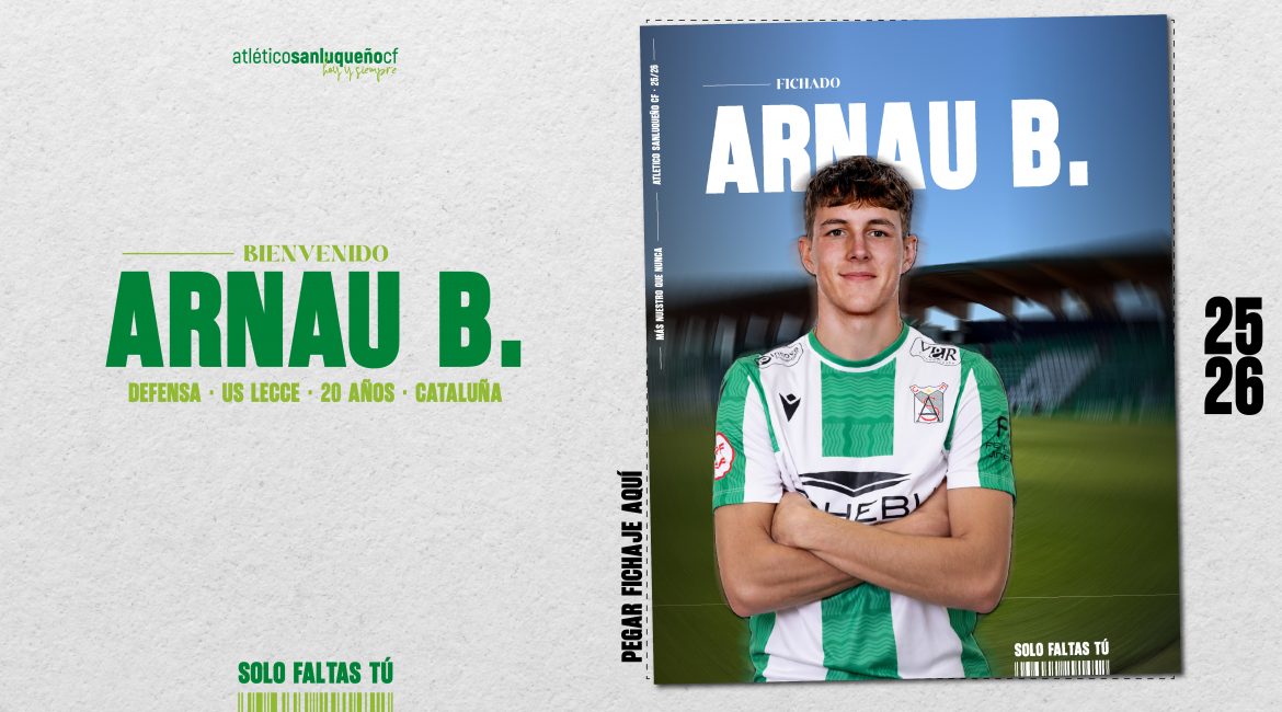 El defensa Arnau Bargallo (20/01/2006) se convierte en nuevo jugador del Atlético Sanluqueño CF procedente del US Lecce.