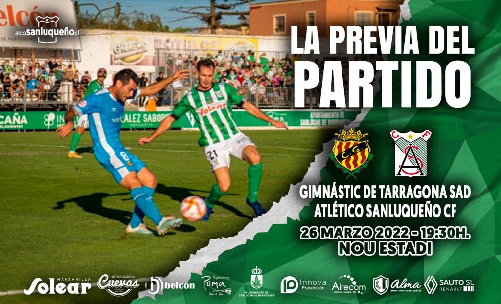 Los verdiblancos visitarán el Nou Estadi de Tarragona tras el empate de la jornada anterior ante el UCAM Murcia que dejó un mal sabor de boca debido a como se dio el partido y a la necesidad imperiosa de sumar de tres para salir de la zona de descenso. Actualmente, el cuadro de Manolo Sanlúcar, a inicios de la jornada, es 16º con 33 puntos y un partido menos, a solo uno de la salvación, que la marca el Sevilla Atlético con 34 puntos, pero también con un encuentro aún por disputar. Curiosamente, el siguiente equipo por delante en la tabla es el Linares, también con 34 puntos, pero con dos partidos pendientes, uno de ellos precisamente el que tiene que jugar contra el Atlético Sanluqueño. Partido vital ese, pero antes viene el Gimnàstic de Tarragona.