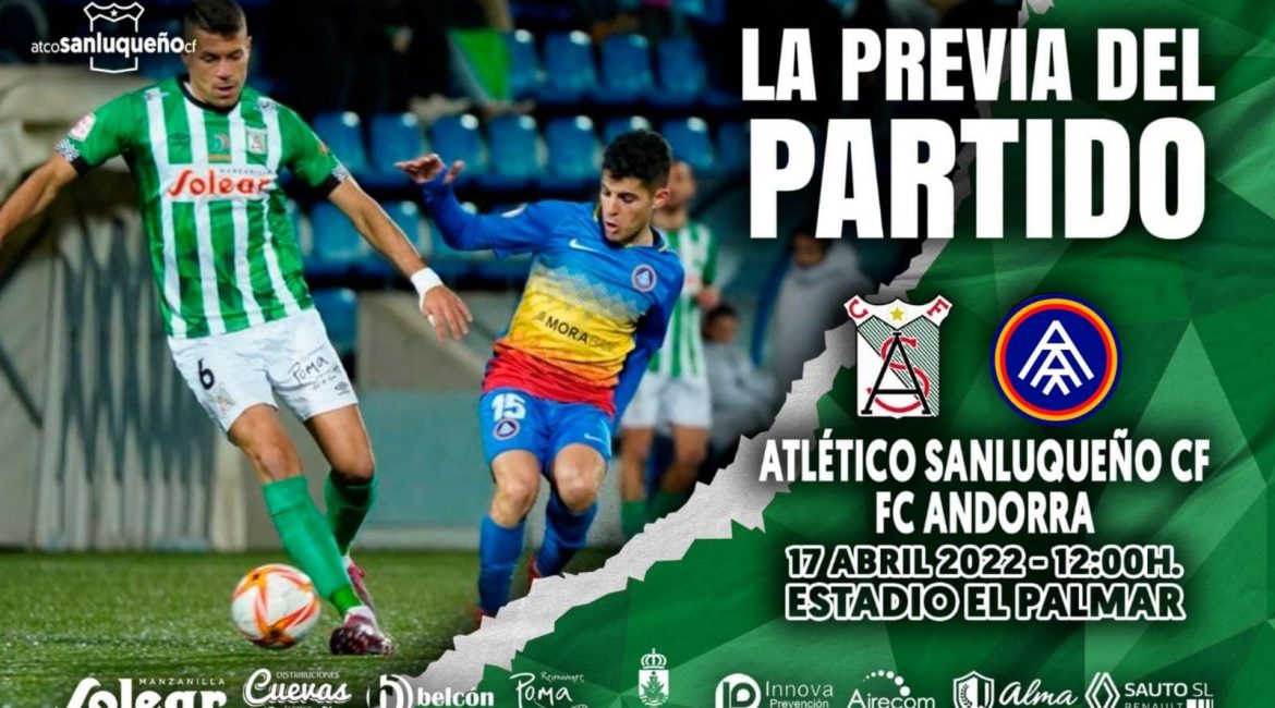 En clave del Andorra, el equipo de Eder Sarabia continúa una jornada más en su pelea por el ascenso, y una victoria en El Palmar le podría poner en esa posición que da el ascenso directo si el Albacete no ganase su partido, por lo que al igual que para el Atlético Sanluqueño este partido es importantísimo, para ellos también.