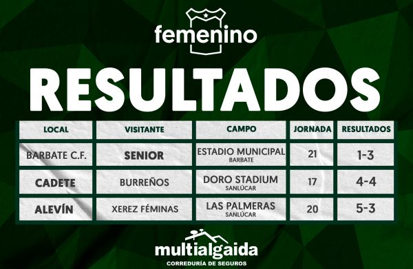 Barbate 1 - 3 SENIOR CADETE 4 - 4 Burreños Goles: 1-2 Paula Gálvez (24'); 2-2 Lucía Ibáñez (26'); 3-2 Daniela Hernández (32'); 4-2 Lucía Ibáñez (41') Empate que deja...