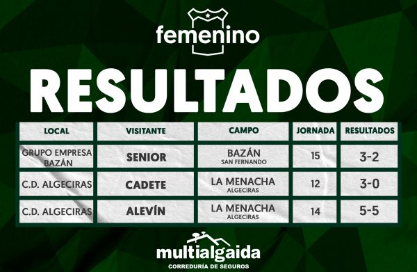 G.E. Bazán 3 - 2 SENIOR Algeciras 3 - 0 CADETE Nueva y dolorosa derrota del cadete femenino por 3-0 ante un rival en principio de igual o parecido nivel...