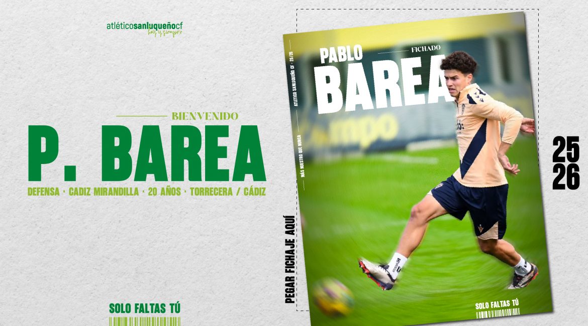 El defensa Pablo Barea (Torrecera, Cádiz, 24/03/2005) se convierte en nuevo jugador del Atlético Sanluqueño CF cedido del Cádiz CF.