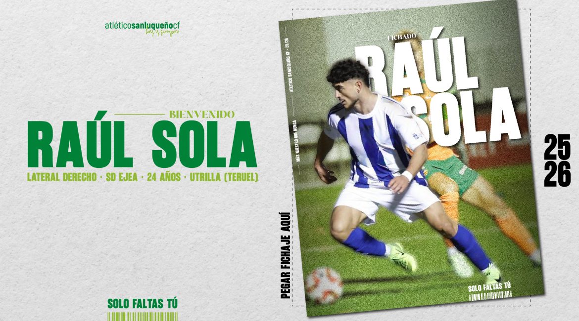 El lateral derecho Raúl Sola (Utrillas, Teruel, 24/01/2001) se convierte en nuevo jugador del Atlético Sanluqueño CF procedente de la SD Ejea.