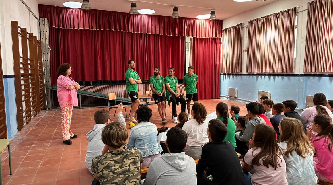 Tras recuperar las tradicionales visitas a los colegios, en la jornada de hoy, el Atlético Sanluqueño ha visitado el CEIP Virgen de la Caridad, situado en El Palmar. A dicha visita han acudido los jugadores del primer equipo, Martí Crespí, Nacho Goma, Kike Carrasco y Alejandro Cortijo, además de Juan Cala, en representación del club verdiblanco.